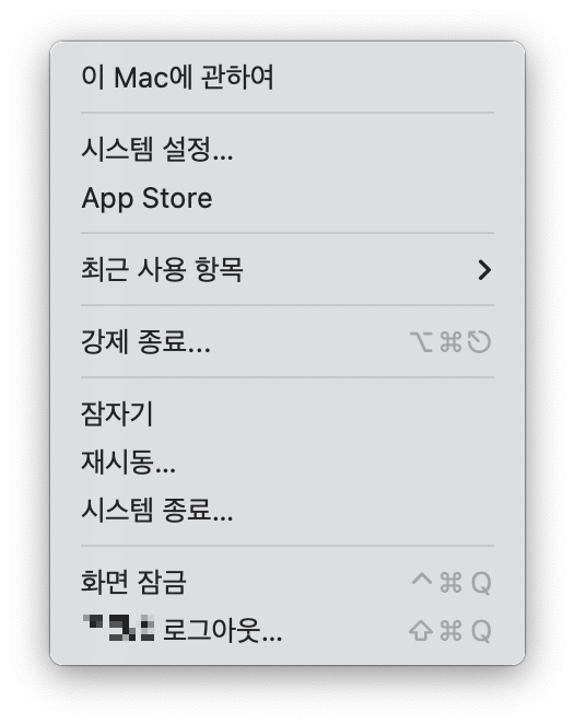 추가한 후 mac의 왼쪽 상단의 사과 모양을 누른 후