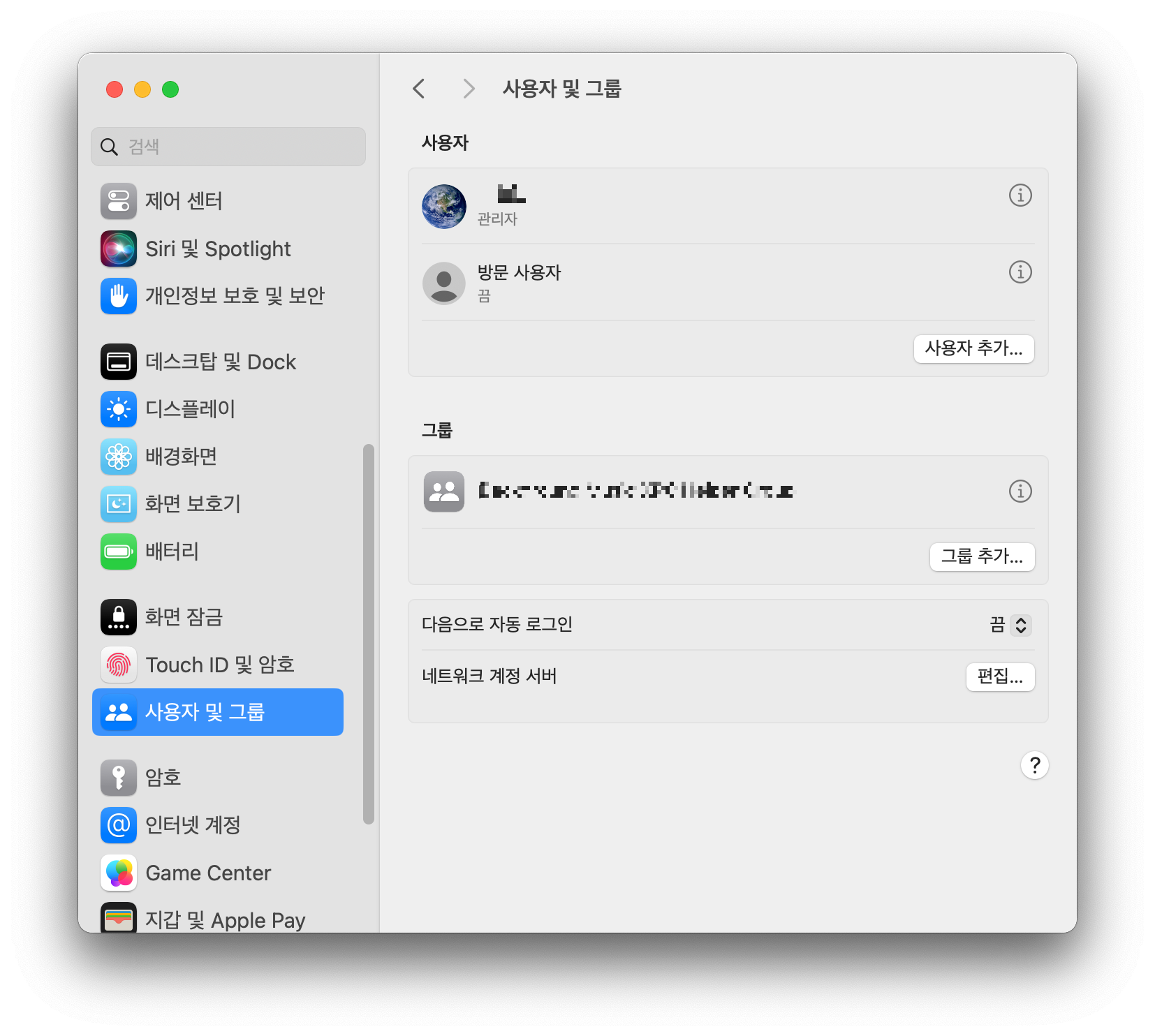 mac의 시스템 환경 설정에서 사용자 및 그룹에 들어간다
