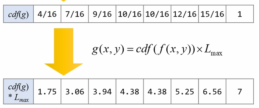 영상의 전체 픽셀에 cdf 값에 해당하는 값으로 출력