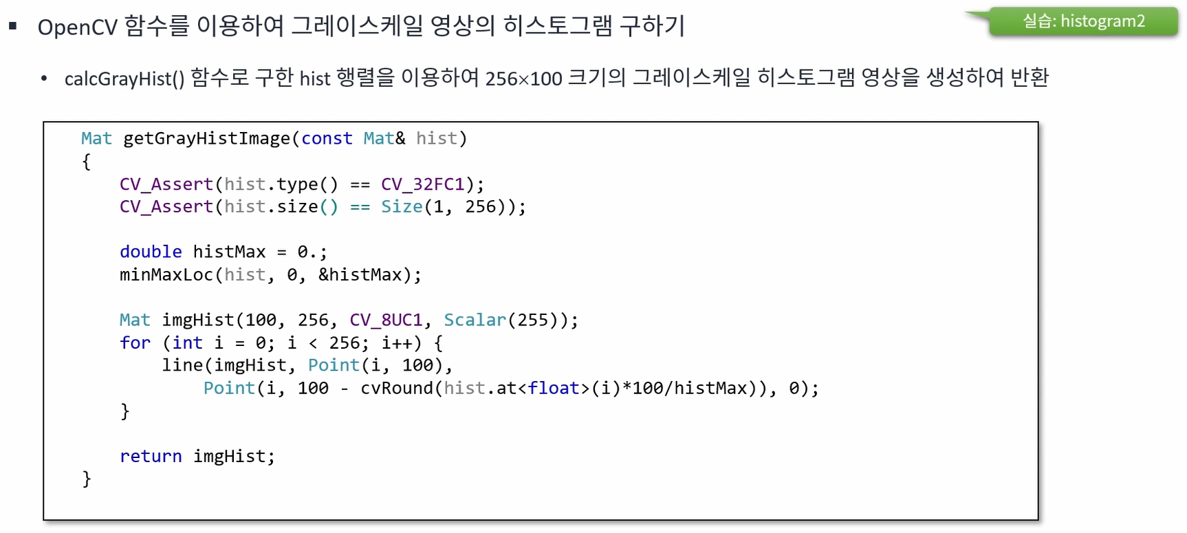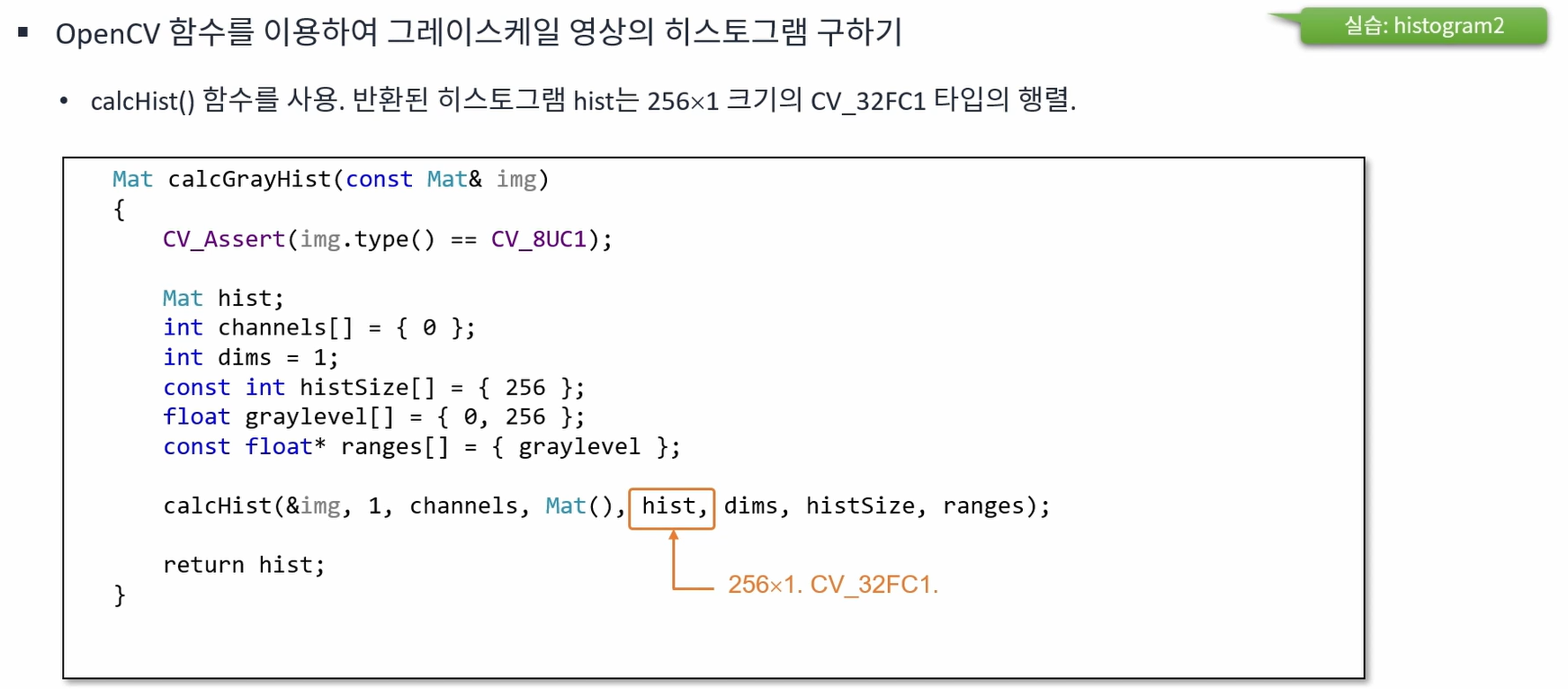 히스토그램은 픽셀 값의 위치 정보는 나타낼 수 없다